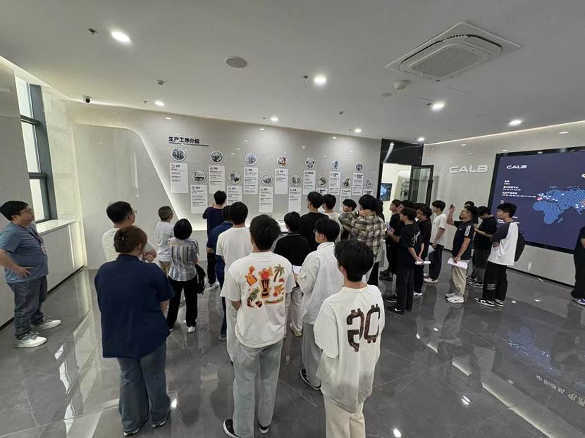 首先,师生们在讲解员的带领下,依次参观了电芯生产车间、模组装配线及企业展厅,深入了解了从原材料入库到成品出厂的各个关键环节。参观过程中,企业工作人员详细介绍了储能电池的结构设计、生产工艺、质量控制体系及当前市场应用场景,让同学们直观感受到先进制造技术在新能源领域的实际应用。