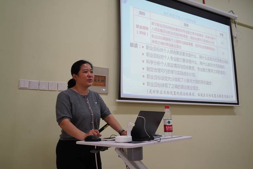 专家引领,启航职业新篇。开班仪式上,孙蕾紧扣大赛背景、赛制解读、赛事感悟、现实筹备四大核心模块,进行系统且深入的分享。在大赛背景阐释环节,她以翔实的资料,深度剖析全国大学生职业规划大赛自创立以来的发展脉络,详细解读大赛旨在引导大学生树立科学择业观、就业观的核心宗旨,着重强调其在推动高校深化就业育人改革、促进毕业生高质量充分就业进程中发挥的关键作用。孙蕾的讲解,使在场师生对大赛的战略意义与社会价值形成更为全面、深刻的认知。