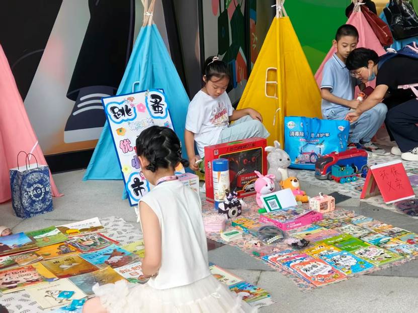 “国庆不宅家,旧玩具换新书啦!”10月1日-2日,一场充满烟火气的“环保小摊主”活动在泰富百货城市广场热闹开启。孩子们趁着国庆假期,将家中闲置的玩具、绘本变身为“商品”,在欢声笑语中践行低碳理念,为假期增添了一抹别样的绿色光彩。