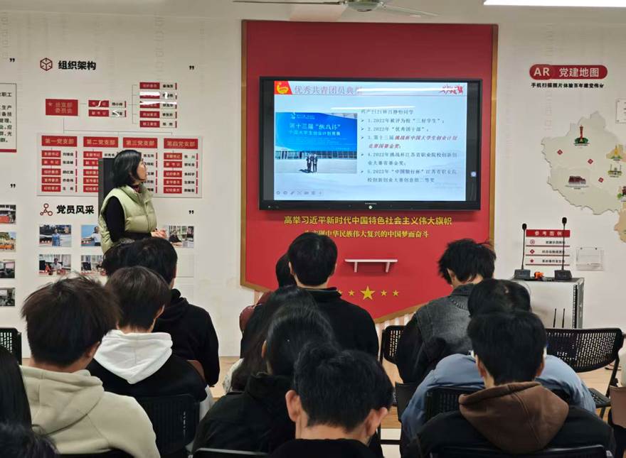 在“优秀共青团员典型”环节,团课聚焦身边榜样,重点分享了药产2121班吕静怡、化工2121班郁枝昕等同学的先进事迹。吕静怡同学凭借扎实的专业知识和创新思维,在“挑战杯”中国大学生创业计划竞赛中斩获国赛金奖,其勇于探索、敢闯敢试的精神令人钦佩。郁枝昕同学作为校“延春”青年志愿者协会主席,不仅学习成绩名列前茅,更怀揣强烈的社会责任感,积极投身志愿服务公益事业,用实际行动诠释青年担当,荣获江苏省优秀青年志愿者等称号。她兼顾学业、工作与志愿服务的成长经历,让现场同学深受鼓舞。
