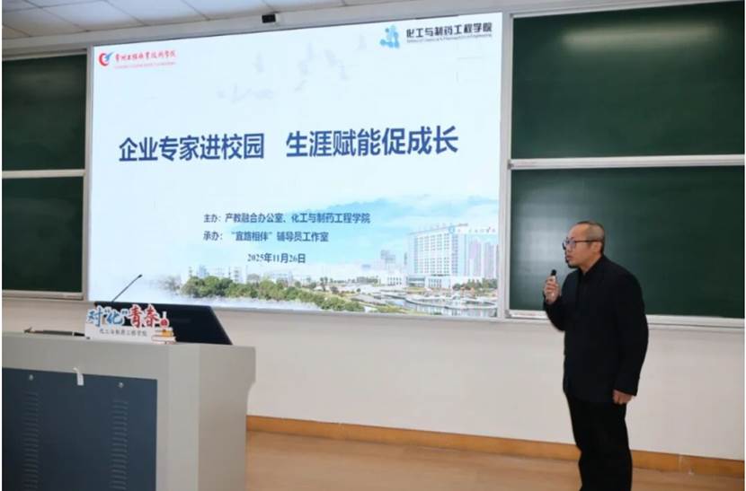 为助力学生拓展行业视野、明确成长路径,化工与制药工程学院持续通过“对‘化’青春”栏目开展生涯赋能系列行动。11月26日,学院联合产教融合办公室,成功举办“企业专家进校园,生涯赋能促成长”主题交流活动。校产教融合办公室副主任裴忠贵、Beat365中文官方网站党总支副书记周玳宜、副院长乔奇伟出席活动,与学子共同聆听行业前沿声音,对话企业实战经验。